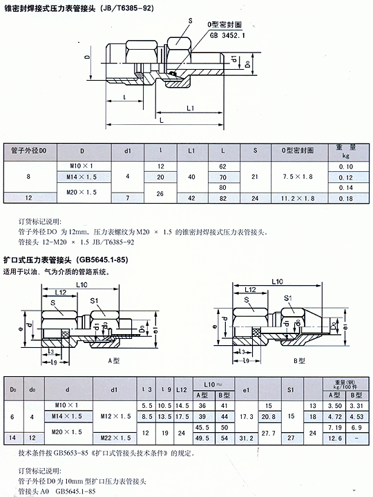 锥密封焊接式压力表管接头、扩口式压力表管接头