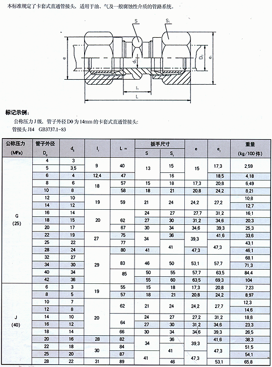 卡套式直通管接头