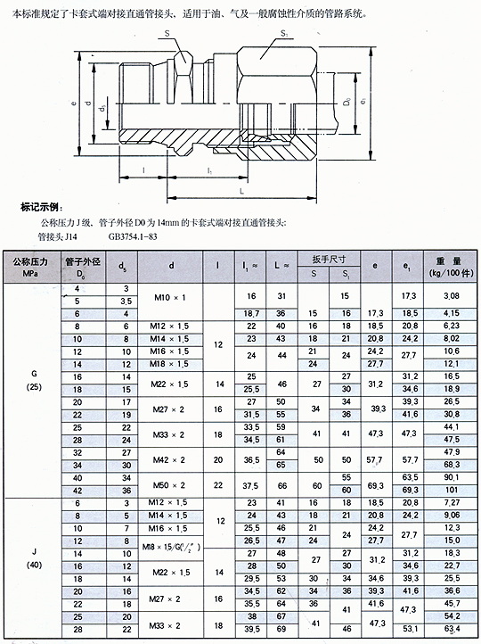 卡套式端对接直通管接头