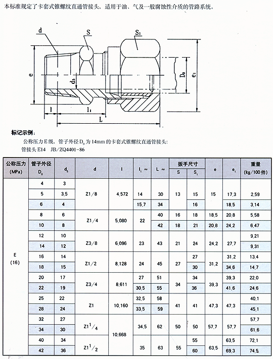 卡套式锥螺纹直通管接头