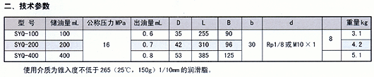 一。使用条件 SYQ型油枪适用于各种小型机械设备、移动的机械设备以及润滑点少且不经常加 油的地方。也可作为移动的小型机械设备的单线集中润滑系统中的主机。 该型油枪具有体积小,重量轻,使用灵活等优点,适用于单润滑点加油以及小型 单线式集中润滑系统的主机。 |