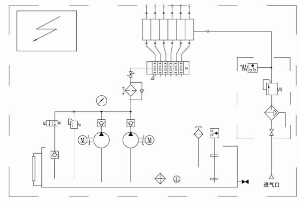 该站主要由油箱(带电加热器、液位计、电接点温度计、空气滤清器、液位控制器)、两台高压油泵装置(一备一用)、溢流阀、二位二通电磁阀、过滤器、单向阀、压力表、KM型递进式分配器、油气混合器、压力控制器及气动三联件和PLC电气控制箱等组成。 在电动机的牵引下油泵工作,从油箱内吸入润滑油加压排出,途径单向阀、过滤器过滤后进KM型单线分配器进行定量分配,分配出的若干份油送自各口的油气混合器进行油气混合,经充分混合后的若干份油气向系统再分配的各油气分配器供送。正常工作时,一台高压油泵工作(常开),另一台备用,可通过电气转换开关来选择使用,并可通过按钮开关人工启动和停止油泵。PLC电气控制箱对油气润滑系统实行程序化全自动控制,同时还可和主控室联锁控制。 |