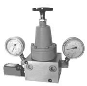 二、功能和结构说明 本阀为二位四通自动液压换向阀,上平面设有两块压力表和调压手轮。换向压力由手轮调节,顺时针压力升高,反之压力降低。本阀门进油口P与泵出油口连接,回油口R接贮油桶,供油口Ⅰ、Ⅱ分别与两条供油管路连接。工作时当Ⅰ路油压达设定压力,换向阀自动切换到Ⅱ路,这样润滑泵就能循环往复地向两条管路供送润滑脂。