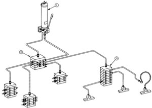 单线润滑系统中常见的几种给油方式 1、油枪方式 使用油枪给油时,一个单元最多能由8个中间体组成,因此最多能向16个润滑点供油。首先是计算轴承的需油量,选择相应的中间体,用表示循环周期的指示器表示给油终了。由于油枪替代了润滑泵,故设备价格低。能按预定量给油,不会浪费,在润滑点较少场合下使用,甚为经济。